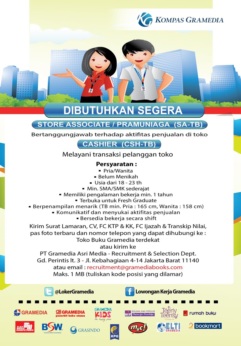 Hr Gramedia Auf Twitter Loker Pramuniaga Kasir Min Sma Maks 23thn Tb 165cm Lk 158cm Pr Kirim Ke Recruitment Gramediabooks Com Http T Co Pk6g26egkl