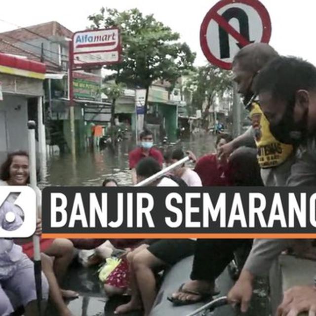 Video Gelak Tawa Polisi Dan Warga Mendayung Perahu Di Tengah Banjir Semarang Regional Liputan6 Com